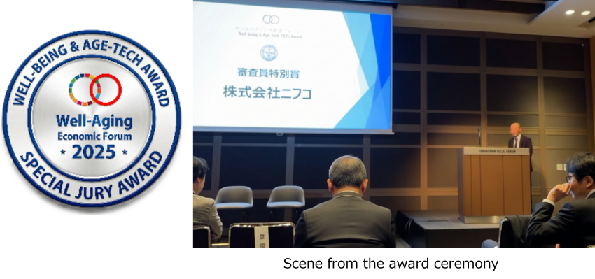 Nifco Inc. (Headquarters: Yokosuka City, Kanagawa Pref., President: Masaharu Shibao, hereinafter "Nifco") has won the Special Jury Award at the Well Aging Economic Forum's "Well-being & Age-tech 2025 Award" for its foot grasping strength measuring device "HAJICHECK."